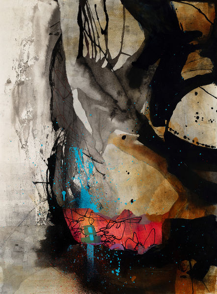 This collection contains mixed media works on paper that combine acrylic paint, collage, and monoprint elements. Names and sizes can be displayed by placing the cursor over images. Prices available on