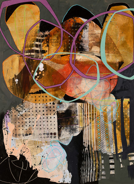 This collection contains mixed media works on paper that combine acrylic paint, collage, and monoprint elements. Names and sizes can be displayed by placing the cursor over images. Prices available on